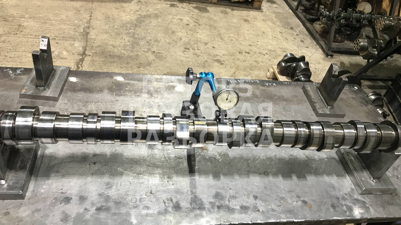 Хорошее состояние , проверен на прогиб — биение составляет 0,01 мм, шейки проверены микрометром — стандартный размер , кулачки без повреждений , сколов царапин .