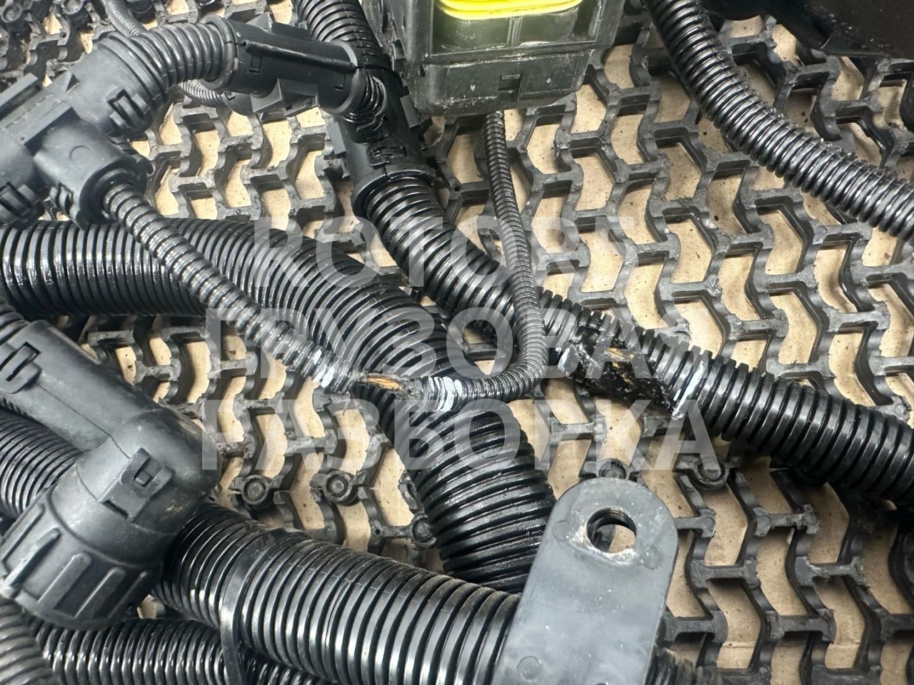 Присутствуют надрывы гофры и изоляции проводов указаны на фото