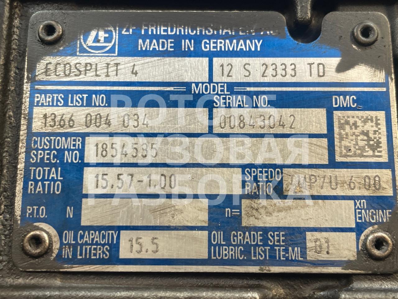 | Номер запчасти | 12S2333TD, 1854535 |